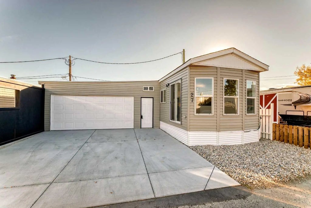 Back on the market due to financing...Re-done Park Model... Oasis Mobile Home Park. If quiet and bright is what your looking for.. look no further. This 1985 park model home with 1 bedroom, 1 (4 pc) bathroom, offers a spacious design with high ceilings, multiple large (vinyl) windows that allows a sunshine to pour in. Newly renovated with classy finishes, fresh painted, new (laminate) flooring and kitchen appliances. The attached garage (550 sqft) is insulated, wired for 240 amps, epoxy floor and new concrete driveway. Perfect for vehicles, workshop or extra storage. Affordable lot lease rate ($760.00 per month), including water, sewer, snow removal, park maintenance. Book your showing today with your favorite Realtor.